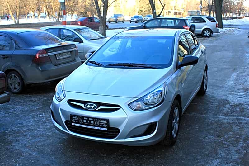 Hyundai Solaris (Хендай Солярис), седан, Pin-Up кондиционер, серебристый и белый.